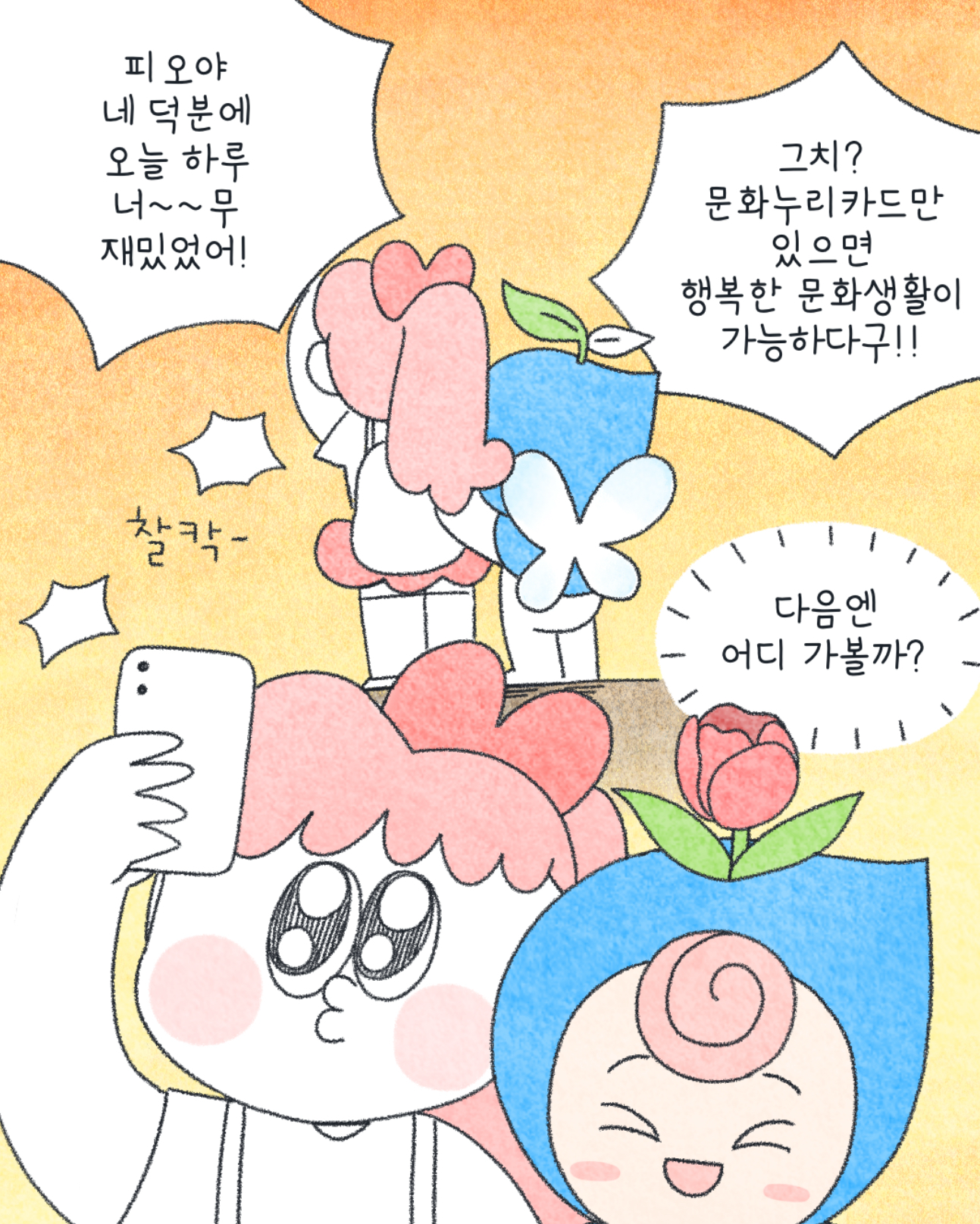 안녕하세요, 문화누리활용팁을 전해드립니다. 문화누리카드 정보를 담은 웹툰 만화가 제작되었습니다. 1편은 문화누리카드로 이용가능한 문화생활(지역축제, 소극장공연)을 담은 내용입니다. 1편인 '피오와 미카의 예술여행'은 공연관람부터 지역축제까지, 문화누리카드로 즐길 수 있는 다양한 문화생활을 '여행'으로 풀어보았습니다. 총 3편까지 안내드릴 예정이니 많은 관심 부탁드립니다:) 아래 링크에서도 확인 가능합니다. ▼ https://blog.naver.com/munhwanuricard/224013947015 |